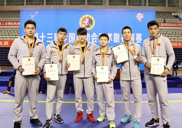 我校散打代表队在全运会预赛中创佳绩 时间:2017-04-28 来源:作者: “第十三届全国运动会武术散打预赛”于4月14-20日在河南焦作举行,共有来自32个参赛单位的276名运动员参加比赛。比赛历时七天,决出男、女团体及各单项级别前12名,共72张全运会武术散打决赛入场券。 我校散打代表队经过顽强拼搏,共有9人获得了下半年的全运会决赛资格,将分别代表黑龙江、浙江、山东、北京等省市单位参加第十三届全运会决赛。