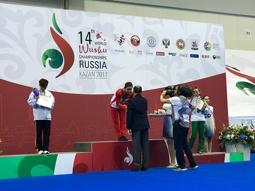 我校学生夺得武术世锦赛冠军 时间:2017-09-30 来源:作者: 2017年9月28日至10月3日,每两年举行一届的第14届世界武术锦标赛将在俄罗斯喀山市隆重举行。在30日的比赛中,我校武术套路代表队2014级王雪凭借完美的表现,获得女子长拳冠军,为中国代表队夺得一枚金牌。