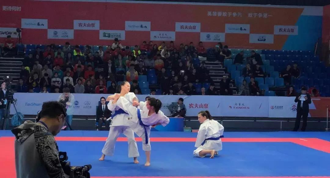 我校空手道队在此次比赛中奋勇拼搏,夺取一金八铜。